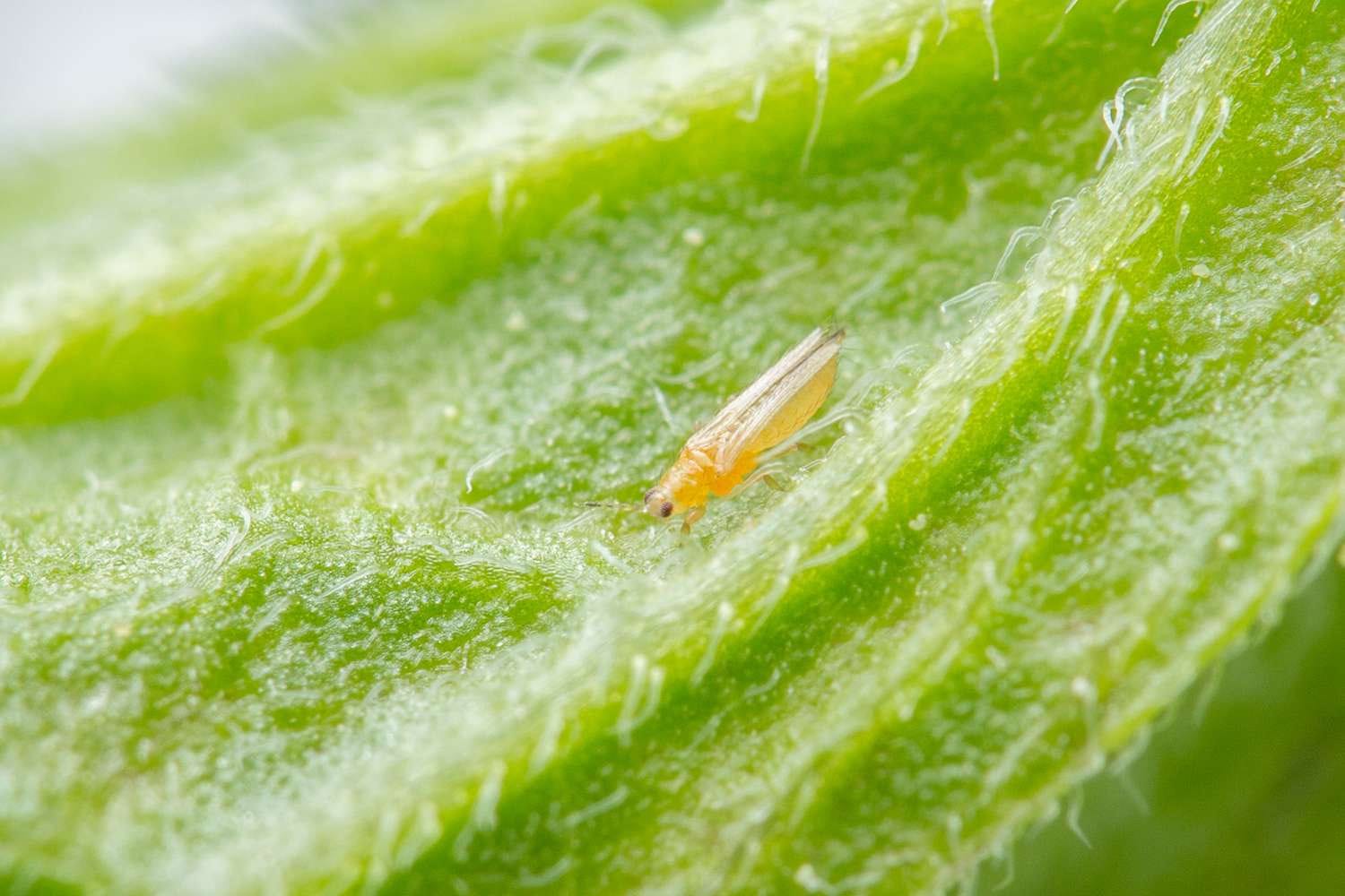 Bọ trĩ (Frankliniella schultzei) rất nhỏ, có hình dáng thon dài, cánh của chúng có dạng tơ, rìa cánh có nhiều lông nhỏ. Cả bọ trĩ trưởng thành và ấu trùng đều dùng miệng chích hút nhựa cây để sinh sống. Bọ trĩ chích hút làm lá non xoăn lại, ngọn cây chùn lại và không phát triển được. Trên mặt lá xuất hiện những vệt hoặc đốm nhỏ màu trắng bạc, sau đó dần chuyển sang màu nâu vàng. Hoa bị biến dạng, táp khô và dễ rụng, ảnh hưởng trực tiếp đến tỷ lệ đậu quả. Khi tấn công quả non, vết chích hút của bọ trĩ tạo thành những vùng da "ghẻ", sần sùi, có màu xám bạc hoặc nâu. Bọ trĩ là môi giới truyền virus gây bệnh.