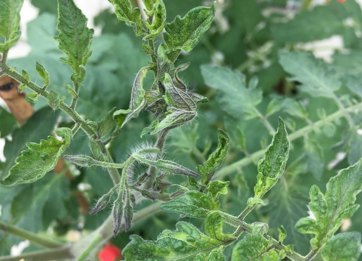 Bệnh xoăn lá virus (TNRV, ToMV, TYLCV, TSWV, CMV) là một mối đe dọa nghiêm trọng vì hoàn toàn không có thuốc đặc trị. Lá non bị xoăn tít, nhỏ lại, có màu vàng sáng hoặc vàng ở mép lá, gân lá trong. Lá già trở nên dày, giòn và cứng. Cây bị nhiễm bệnh sẽ bị chùn ngọn, ngừng sinh trưởng, trở nên còi cọc, thấp lùn. Hoa bị vàng, rụng nhiều, tỷ lệ đậu quả rất thấp hoặc không có khả năng đậu quả.