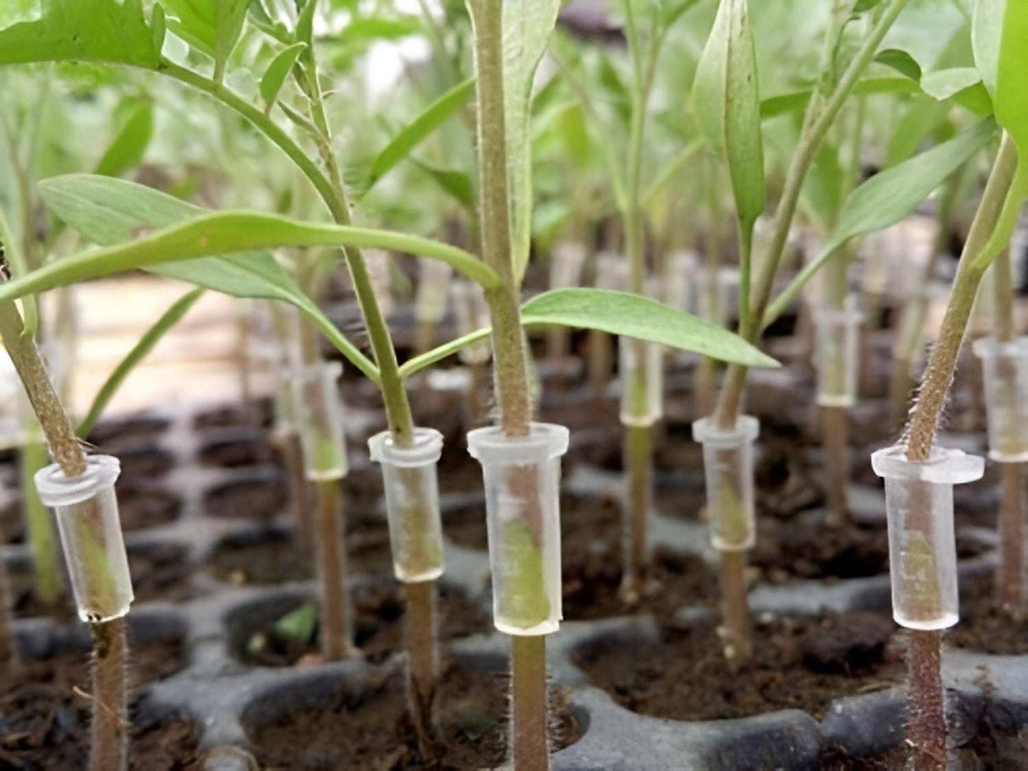 - Khi cây con đạt khoảng 30-35 ngày tuổi, cao khoảng 12-15 cm với 5-6 lá thật, khoẻ mạnh, cân đối, không dị hình, rễ chớm đáy bầu, ngọn phát triển tốt, không có biểu hiện nhiễm sâu bệnh có thể mang trồng ra ruộng hoặc giá thể.