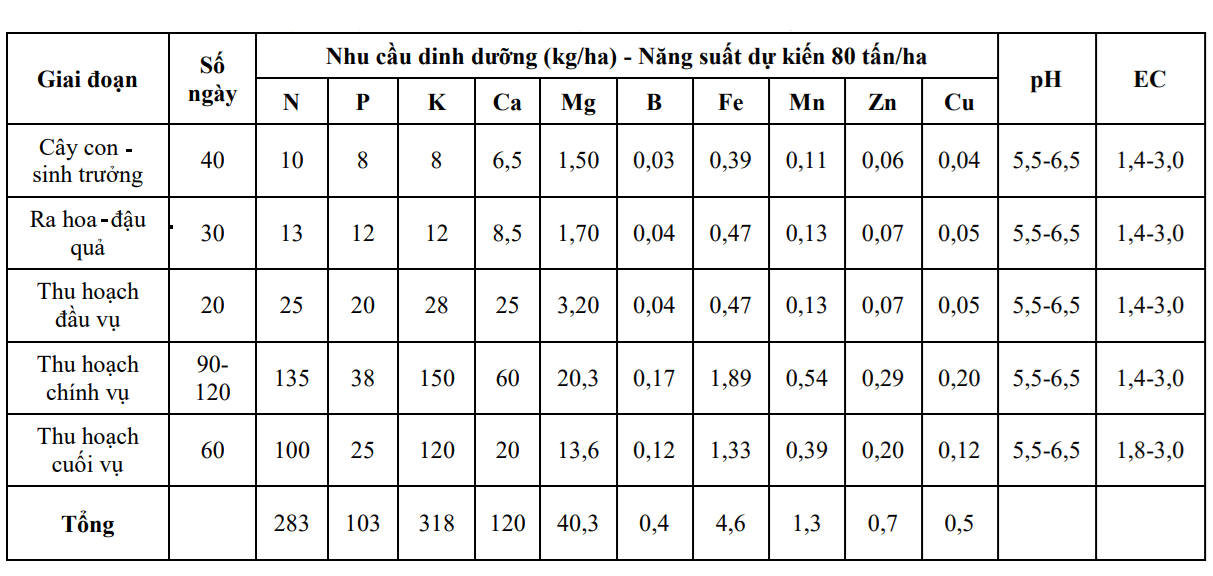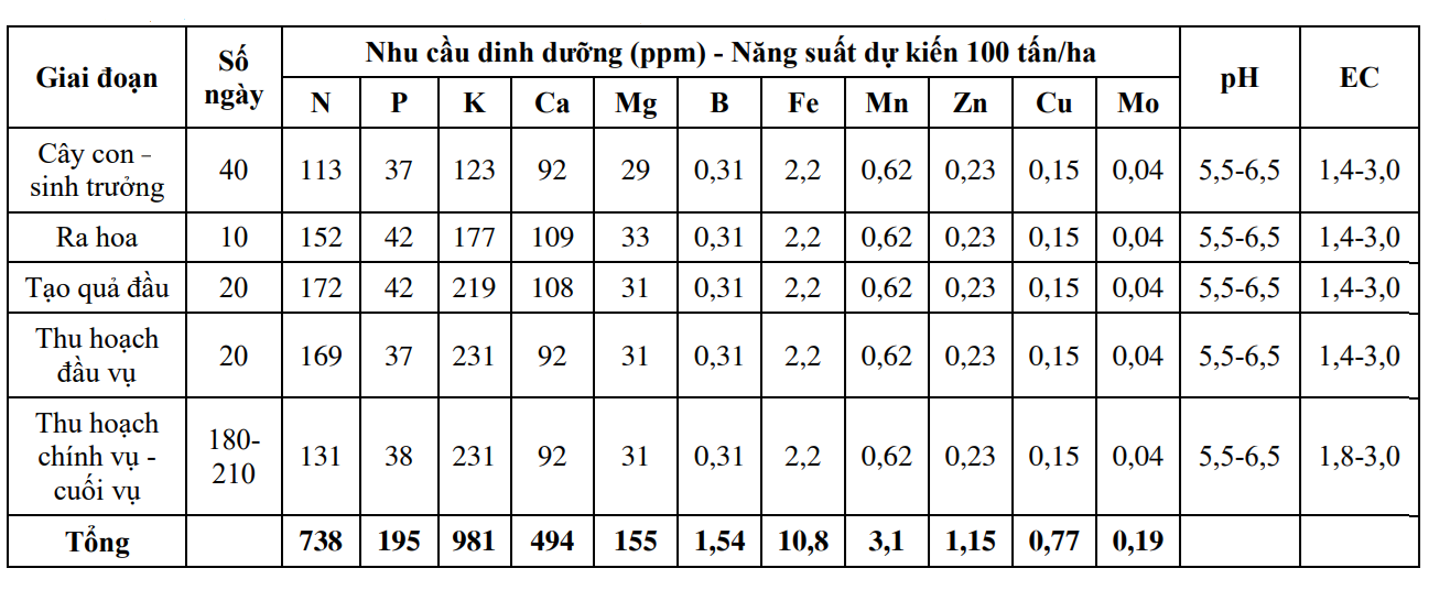 Đối với các giống sinh trưởng vô hạn, các giai đoạn phát triển chồng chéo lên nhau tạo ra một nhu cầu dinh dưỡng liên tục.