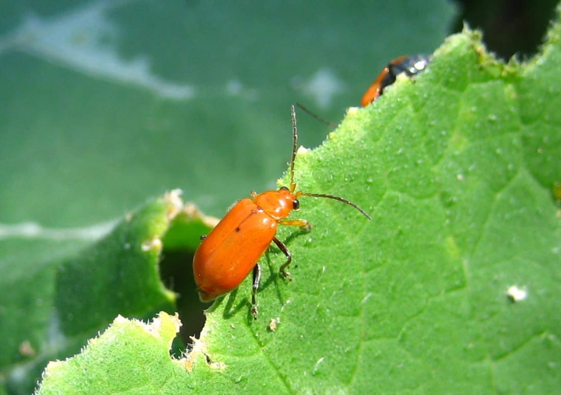 Bọ dưa (Aulacophora similis) to bằng hạt đậu xanh, có cánh cứng, màu vàng cam bóng loáng đặc trưng, đẻ trứng quanh gốc dưa, cắn phá vào sáng sớm hoặc chiều mát. Bọ dưa gây hại nặng khi cây còn nhỏ, lúc 4-5 lá. Ấu trùng (sùng đất) sau khi nở, sống dưới đất, ăn gặm rễ cây và đục vào gốc làm dưa chết héo. Bọ trưởng thành ăn phần diệp lục của lá, chừa lại phần gân, tạo ra những vết thủng có hình dạng giống như tấm lưới hoặc ren, khiến lá xơ xác.