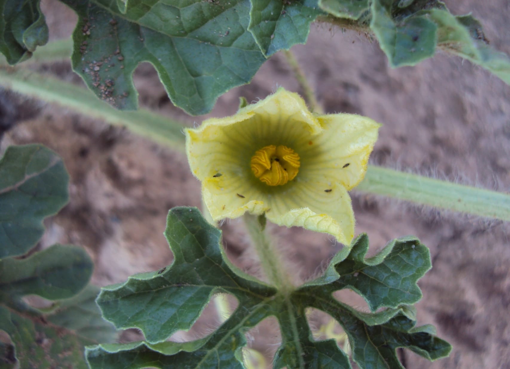 Hoa: Dưa hấu là cây đơn tính đồng chu (monoecious), nghĩa là hoa đực và hoa cái tồn tại riêng biệt nhưng cùng trên một cây. Hoa có màu vàng nhạt, đường kính khoảng 2,5-3 cm, mọc đơn độc ở các nách lá. Theo quy luật phát triển, hoa đực thường xuất hiện trước hoa cái khoảng 10-14 ngày. Hoa cái có thể dễ dàng nhận biết nhờ có một bầu nhụy (bầu quả non) rõ ràng nằm bên dưới các cánh hoa (inferior ovary). Dưa hấu thụ phấn chủ yếu nhờ côn trùng, trong đó ong mật đóng vai trò quan trọng nhất. Hoa cái chỉ nở và có khả năng thụ phấn trong một ngày duy nhất, thường là vào buổi sáng. Để quả có thể phát triển to, tròn đều và không bị méo mó, mỗi hoa cái cần được ong đến thụ phấn nhiều lần (trung bình khoảng 7 lần). Nếu quá trình thụ phấn không đầy đủ, quả non sẽ bị biến dạng, phát triển không hoàn thiện và cuối cùng sẽ rụng đi. Áp dụng các biện pháp thụ phấn bổ sung bằng tay, đặc biệt trong điều kiện thời tiết bất lợi (mưa nhiều, ít nắng), là một kỹ thuật canh tác tối quan trọng.