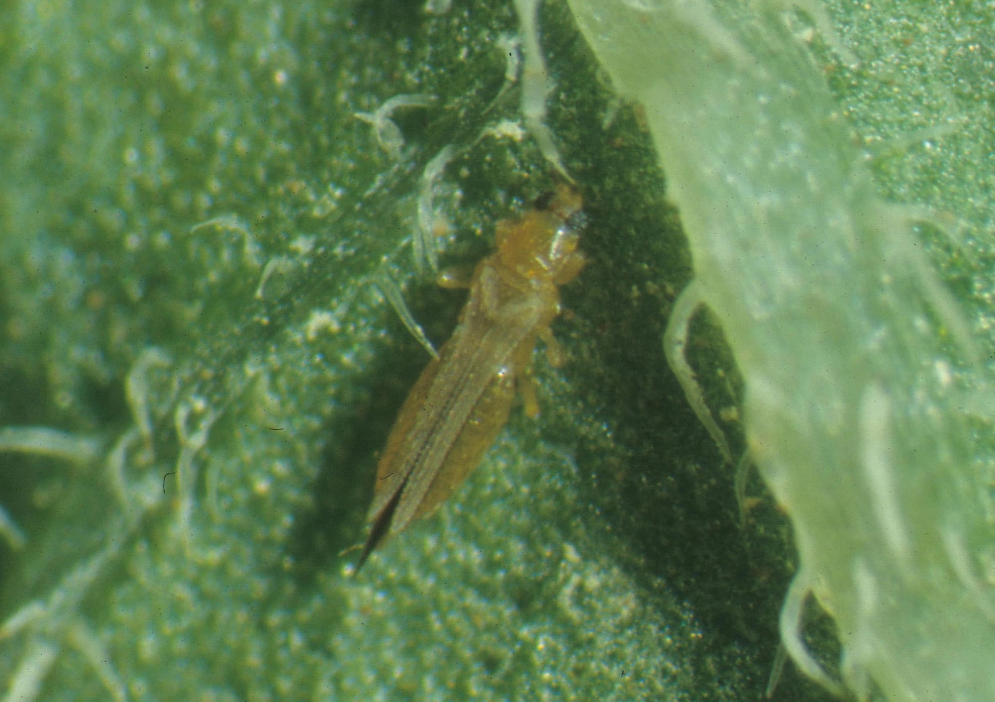 Bọ trĩ (Thrips palmi) có kích thước rất nhỏ, thân hình thon dài, có cánh dài và hẹp với nhiều lông tơ ở mép. Bọ non có màu vàng nhạt, không cánh. Chúng di chuyển rất nhanh và thường lẩn trốn trong đọt non, nách lá, mặt dưới lá hoặc bên trong hoa. Chúng cào rách lớp biểu bì của cây rồi hút dịch bào. Bọ trĩ tấn công làm hoa bị biến dạng, táp khô và dễ rụng, làm giảm nghiêm trọng tỷ lệ đậu quả. Khi quả còn non, bọ trĩ chích hút trên vỏ, tạo ra các vết sẹo, sần sùi (gọi là da lu). Ngọn và lá non bị tấn công sẽ xoăn lại, chùn lại và không phát triển được. Toàn bộ cây có thể trông như bị "cháy" hoặc táp nắng.