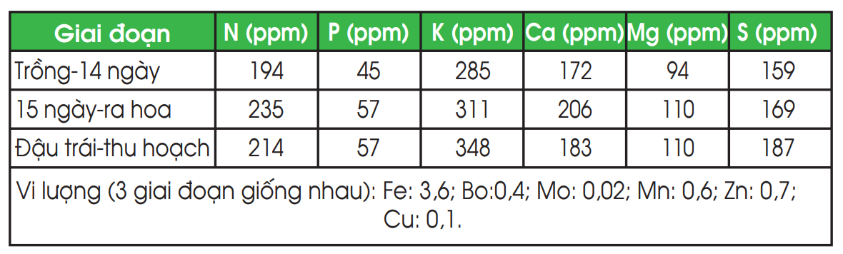 - Nhu cầu về kali (K) trong giai đoạn này là cao nhất, vì kali đóng vai trò quan trọng trong việc vận chuyển đường từ lá vào quả.