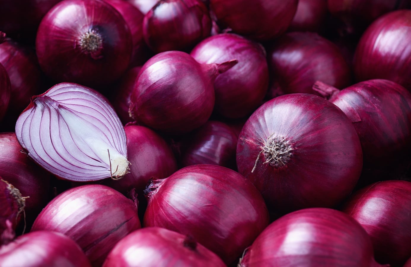 Hành tây tím: Vỏ màu tím đỏ đẹp mắt, thịt trắng có viền tím. Chứa hàm lượng anthocyanin và quercetin cao. Vị thường hăng nhẹ hơn hành vàng, kết cấu giòn, thích hợp ăn sống (salad, gỏi, sandwich) để giữ màu sắc. Giống phổ biến: Red Creole, các giống lai F1 khác.