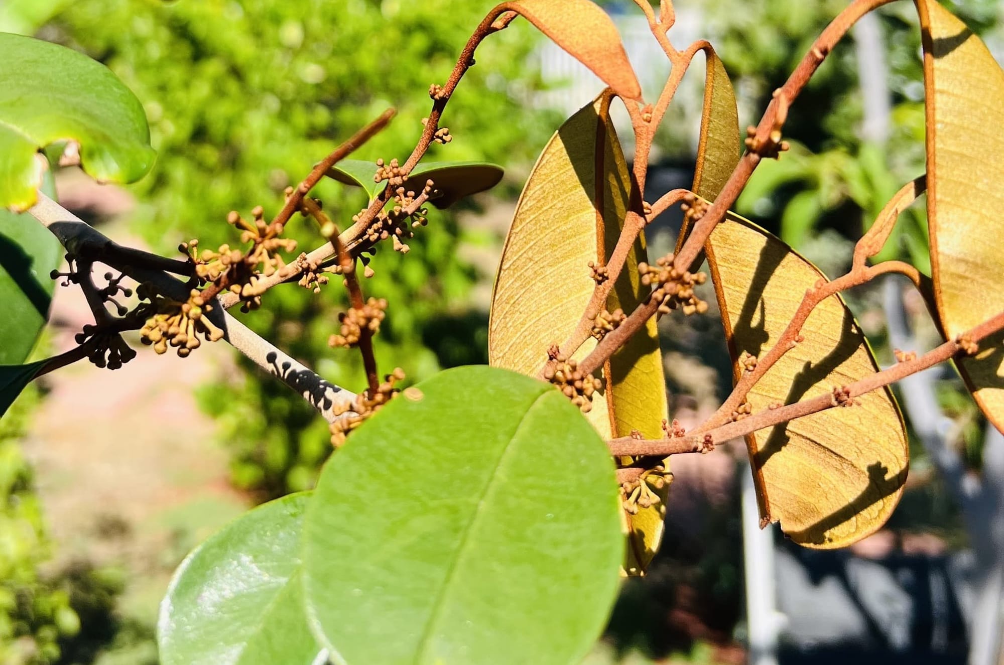 - Kích thích ra hoa: Cần tác động để cây chuyển từ giai đoạn sinh trưởng sinh dưỡng sang sinh trưởng sinh sản (ra hoa), cần tạo ra một giai đoạn khô hạn nhất định, thường gọi là "siết nước". Trước khi xiết nước, cần dọn sạch cỏ dại và lá khô xung quanh gốc để tạo độ thông thoáng, giúp đất nhanh khô hơn. Nếu sau thời gian xiết nước mà cây chưa ra hoa nhiều, có thể tưới nhẹ một lần rồi tiếp tục ngừng tưới. Có thể tác động bổ sung bằng hóa chất nông nghiệp, điều hòa sinh trưởng để giúp cây chuyển pha rõ rệt và đồng loạt hơn.