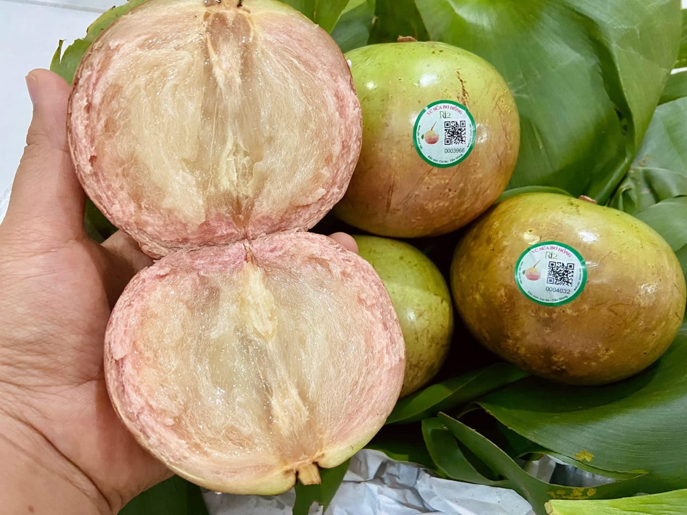 Vú sữa Bơ hồng: Là giống có nguồn gốc từ Đồng Tháp, nổi bật với năng suất cao và thời gian cho quả sớm, chỉ sau khoảng 20 tháng trồng. Quả có kích thước lớn, trung bình 250-400 g, nếu chăm sóc tốt có thể đạt tới 700 g. Quả hình tròn, vỏ căng bóng, khi chín có màu ửng hồng rất đẹp mắt. Thịt quả màu trắng sữa, kết cấu chắc, không bị nhão, vị ngọt thanh mát và đặc biệt là có mùi thơm nhẹ của bơ sữa. Độ ngọt (độ Brix) của giống này được đánh giá cao, có thể đạt tới 17.78%.