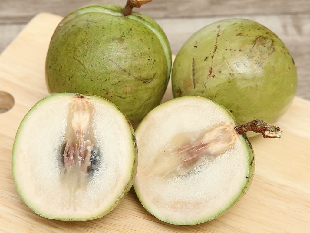 Tên tiếng Anh: star apple. Tên tiếng Trung: 星苹果. Cây thân gỗ với quả hình cầu, thịt quả chứa dòng sữa trắng mềm, ngọt.