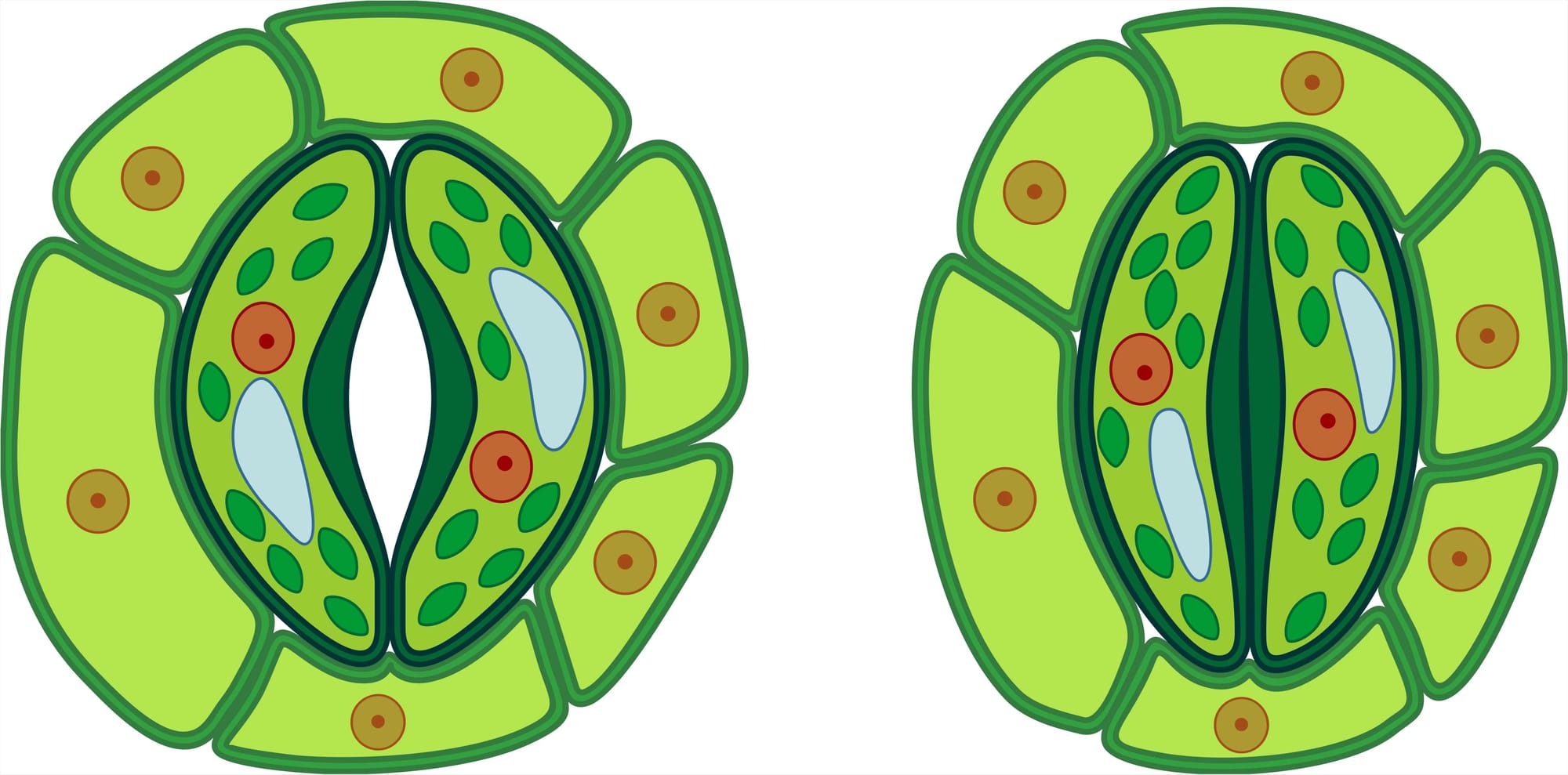 - Ion Kali (K+): Đây là chất thẩm thấu chính. Khi có tín hiệu mở (ví dụ như ánh sáng), các bơm proton trên màng tế bào bảo vệ sẽ hoạt động, tạo ra một gradient điện hóa. Gradient này thúc đẩy các kênh ion mở ra và vận chuyển tích cực ion K+ từ các tế bào lân cận vào bên trong tế bào bảo vệ. Sự tích lũy K+ làm tăng đáng kể áp suất thẩm thấu, kéo nước vào và làm khí khổng mở. Quá trình đóng khí khổng liên quan đến việc các kênh ion cho phép K+ di chuyển ra khỏi tế bào.