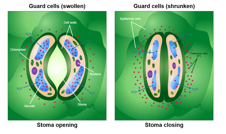 Sự thay đổi sức trương nước này, về bản chất, được điều khiển bởi một cơ chế sinh hóa tinh vi: sự thay đổi nồng độ các chất hòa tan (chất thẩm thấu) bên trong tế bào chất của tế bào bảo vệ. Khi nồng độ chất tan bên trong tế bào tăng lên, thế năng nước của tế bào giảm xuống, khiến nước từ các tế bào biểu bì xung quanh di chuyển vào theo nguyên lý thẩm thấu, làm tế bào trương lên và khí khổng mở. Quá trình ngược lại xảy ra khi nồng độ chất tan giảm. Các yếu tố chính điều khiển nồng độ chất tan bao gồm: